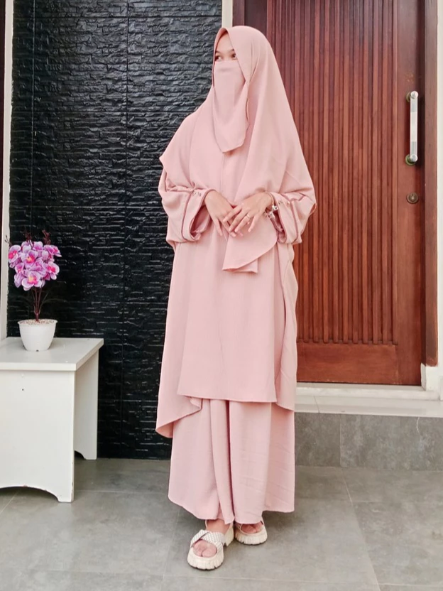 Gamis Set Abaya Syari Busui Cringkle Airflow/Cadar+Pashmina+Rok+Kaftan Tunik/Setelan Gamis Wanita