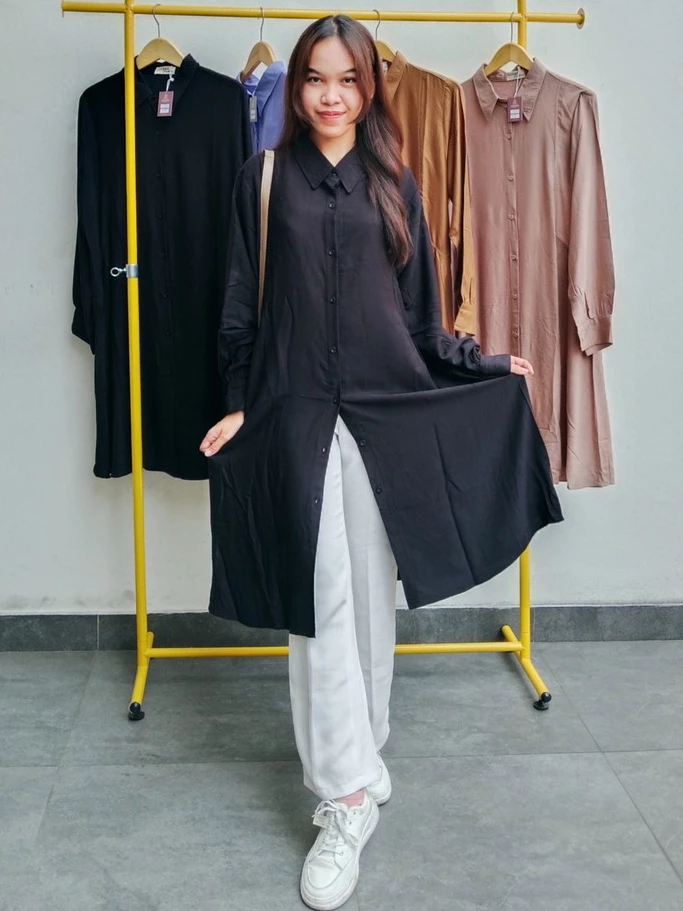 Tunik Shenna Rayon Twill/Tunik Full Kancing/Tunik Kekinian/Dress Tunik Wanita Trendy/Tunik Polos